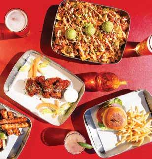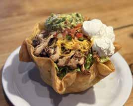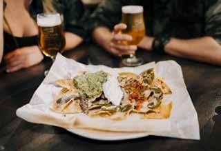 COWBOY NACHOS: BISON CHILI, MONTERREY JACK, PICKLED JALAPEÑO, CORN SALSA, CHIPOTLE CREMA, TORTILLA CHIPS,GUACAMOLE