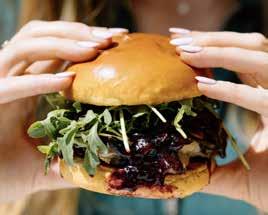 LAMB BURGER WITH MINT AND FETA, PICKLED ONIONS AND CUCUMBERS, HERB MAYO AND A BRIOCHE BUN