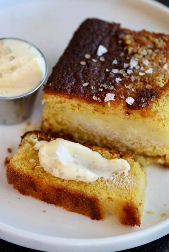 HEIRLOOM CORNBREAD: ANSON MILLS CORNMEAL, MAPLE, SMOKED BOURBON SALTED BUTTER