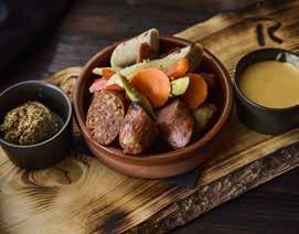RON’S GAME PLATTER: ASSORTED GAME SAUSAGES, HOUSE-MADE GRAINY MUSTARD, CREAMY BEER CHEESE SAUCE