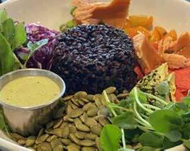 ANCIENT BLUE TREE RICE: GARLEEK, LEMONGRASS, CARROT, PICKLED PEPPER