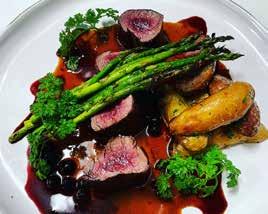 ROCKY MOUNTAIN ELK TENDERLOIN: CONFIT FINGERLING POTATOES, GRILLED ASPARAGUS, RED EYE AU JUS, HUCKLEBERRY GASTRIQUE