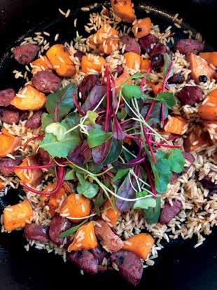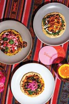 STREETCORN FRITTERS WITH POBLANO CREAM AND CILANTRO LOADED AL PASTOR FRIES WITH CHEESE DIP, PICKLED ONIONS AND AVOCADO CREAM KALE AND ARUGULA SALAD WITH LEMON AND PARMESAN BIBIMBAP WITH KOREAN SPICED BEEF, GARLIC RICE, PICKLED VEGETABLES, KIMCHI AND AN EGG LAMB BURGER WITH MINT AND FETA, PICKLED ONIONS AND CUCUMBERS, HERB MAYO AND A BRIOCHE BUN