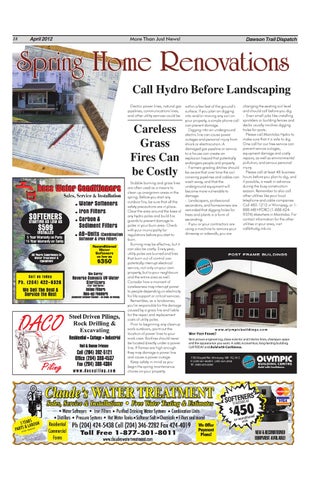 Call Hydro Before Landscaping Electric power lines, natural gas within a few feet of the ground’s pipelines, communications lines, surface. If you plan on digging and other utility services could be into and/or moving any soil on your property, a simple phone call can prevent damage. Digging into an underground electric line can cause power outages and personal injury from shock or electrocution. A damaged gas pipeline or service to a house can create an explosion hazard that potentially endangers people and property. - Farmers grading ditches should be aware that over time the soil covering pipelines and cables can Stubble burning and grass fires wash away, and that the underground equipment will are often used as a means to become more vulnerable to clean up overgrown areas in the damage. spring. Before you start any - Landscapers, professional outdoor fire, be sure that all the excavators, and homeowners are safety precautions are in place. Clear the area around the base of reminded that digging holes for trees and plants is a form of any hydro poles and build fire excavating. guards to prevent damage to - If you or your contractors are poles in your burn area. Check using a machine to remove your with your municipality for driveway or sidewalk, you are regulations before you start to