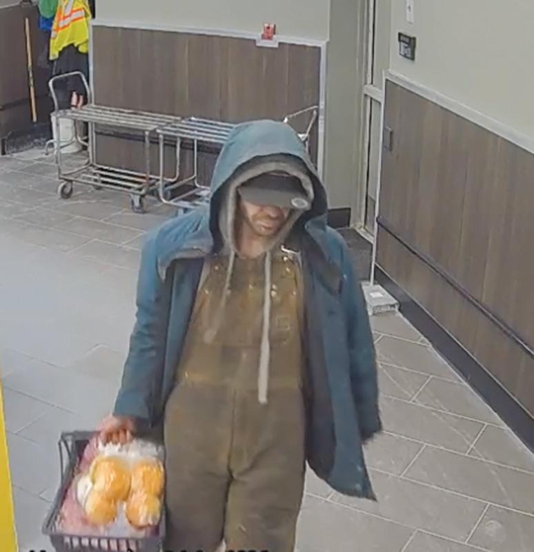 On January 14 at 9:30 pm, Steinbach RCMP received a report that an unknown male walked out with a basket full of groceries. The male was wearing brown coveralls, blue jacket and a black hat.