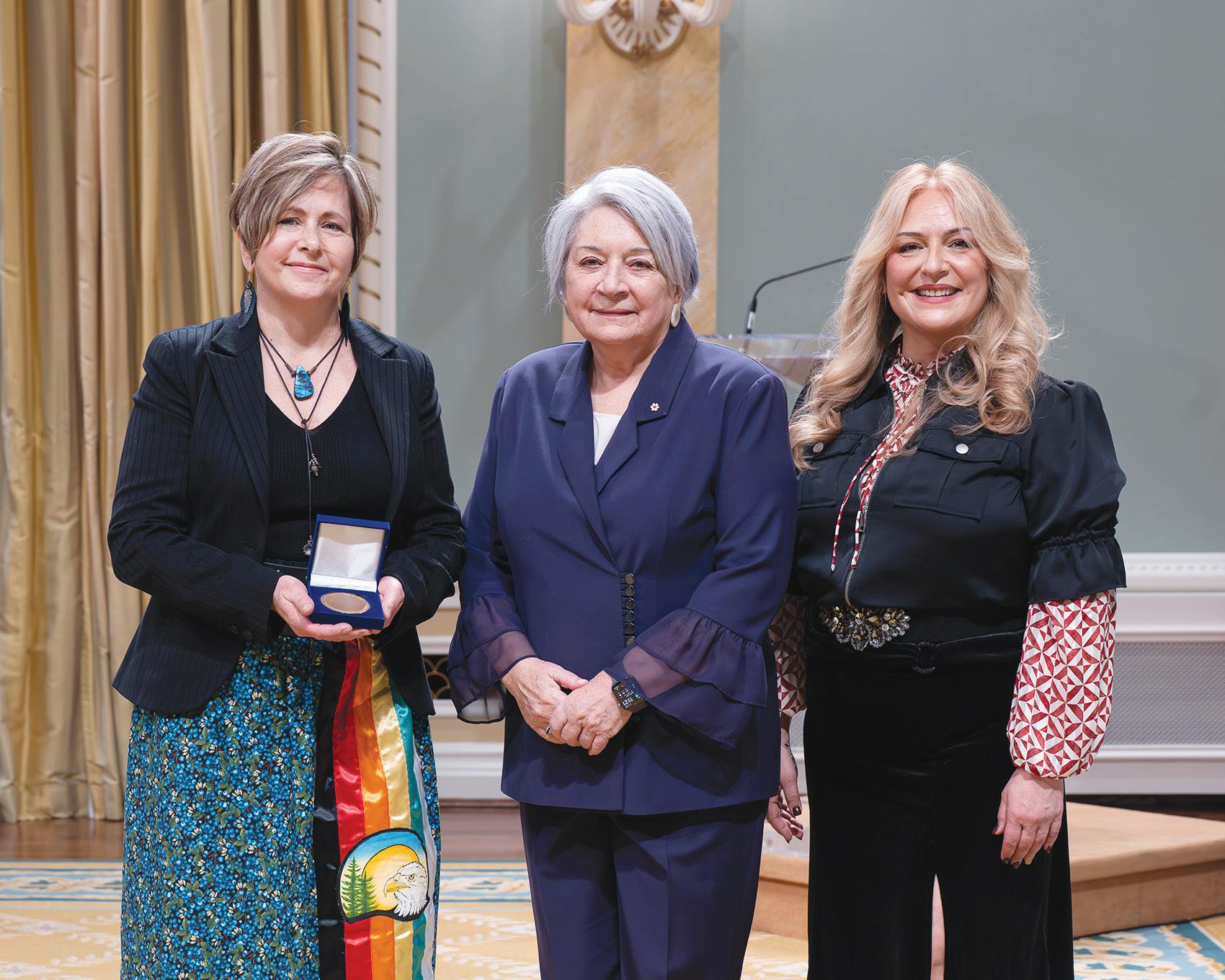 Mary Simon, Governor General of Canada, with Pierrette Sherwood and Mireille Lamontagne from Musée Dawson Trail Museum.