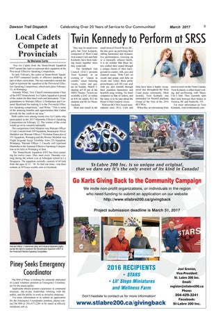 Local Cadets Compete at Provincials By Marianne Curtis Two Air Cadets from the Stoneybrook Squadron #307 earned the right to represent their squadron at the Provincial Effective Speaking Competition. In early February, the cadets at Stoneybrook Squadron #307 competed locally in effective speaking, as part of their curriculum. The top contenders earned the right to represent the squadron at the Provincial Effective Speaking Competition, which took place February 12, in Winnipeg. Amanda White, Vice Chair/Communications Chair of the #307 Stoneybrook Air Cadets Squadron is proud of the cadets for their hard work and dedication. “Congratulations to Warrant Officer 2 Desharnais and Corporal Bjorklund for making it to the Provincial Effective Speaking competition,” said White. “This is some of the amazing benefits and opportunities that Cadets provide for the youth in our area.” Both cadets were among twenty-two Air Cadets who participated in the 2017 Manitoba Effective Speaking Competition on February 12. The winner of the event would go on to compete nationally. The competition Gold Medalist was Warrant Officer 2 Cody Lincoln from 249 Squadron, Beausejour. Silver Medalist was Warrant Officer 2 Nicholas Pasieczka of 191 Squadron, Winnipeg and the Bronze Medalist was Flight Sergeant Sayge Tremblay from 220 Squadron, Winnipeg. Warrant Officer 2 Lincoln will represent Manitoba in the National Effective Speaking Competition to be held in Winnipeg in June. The Stoneybrook Squadron #307 has been parading for twelve years. They meet every Thursday evening during the school year at Arborgate school in La Broquerie. The squadron currently consists of 60 kids from the ages of 12 - 18. To find out more, visit their website at 307rcacs.weebly.com or Facebook.