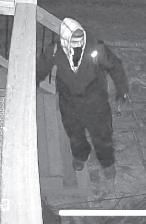 The thief is described as wearing a black winter jacket, black ski pants and wearing a black balaclava. He was observed driving a bicycle with a trailer attached.