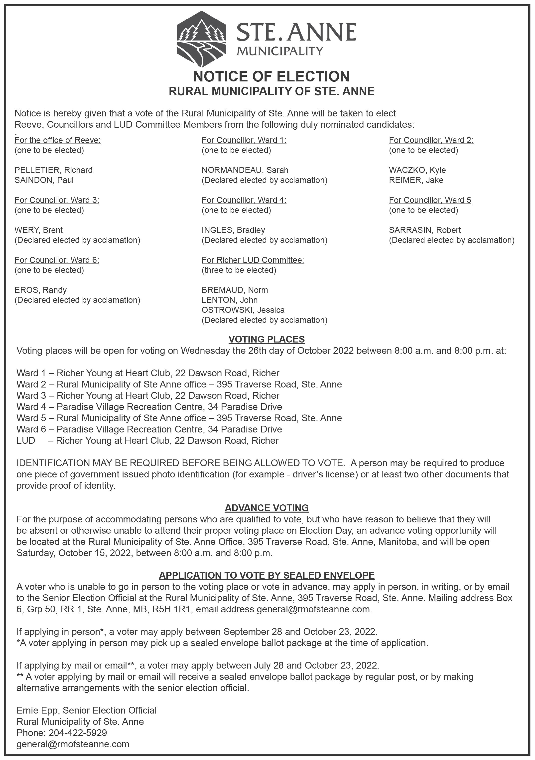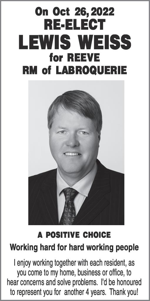 “The crowning achievement is the recent announcement for the Re gional Waste water treatment plant so we don’t depend on lagoons any more,” he continued. “This is a re gional approach showing how RM‘s can work together.”
