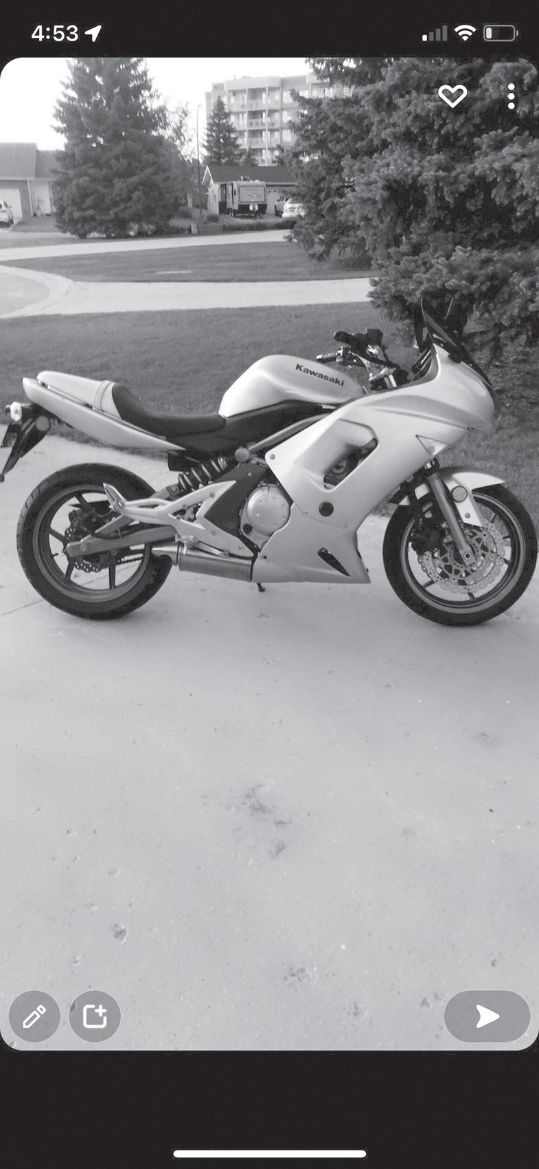 Steinbach RCMP received a report of a stolen grey 2006 Kawasaki Ninja 650 from the area of 6 Highway 12N in Steinbach. The theft oc curred between 3 pm on September 1 and 1 pm on September 3.