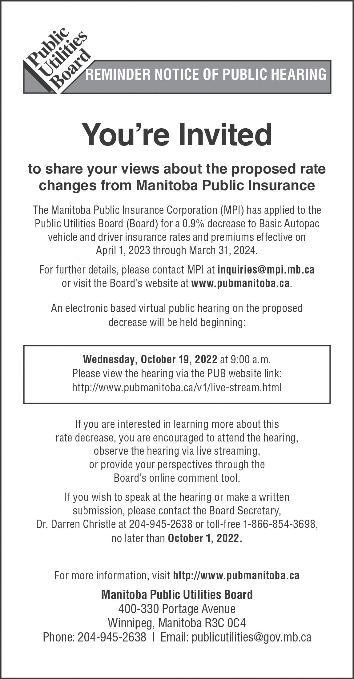 Some of these relief initiatives include expanding the child-care subsidy program; phasing out of education property taxes; intro ducing a new residential renters’ tax credit; and providing rebate cheques to vehicle owners through Manitoba Public Insurance.