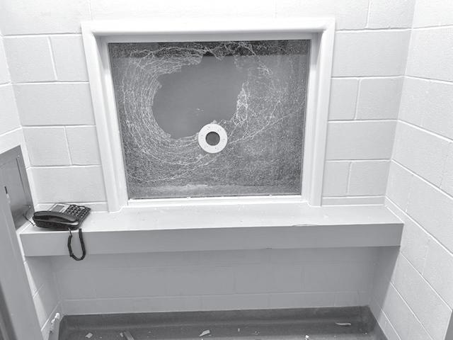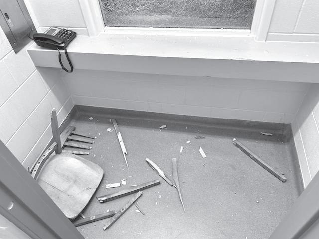 Hours later, the male demonstrated calm behaviour and was taken to a secure room to place a call. Upon entering the room, he became agitated once again and caused significant damage inside the room. Officers were able to gain control and transfer him back to a cell.