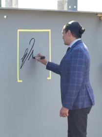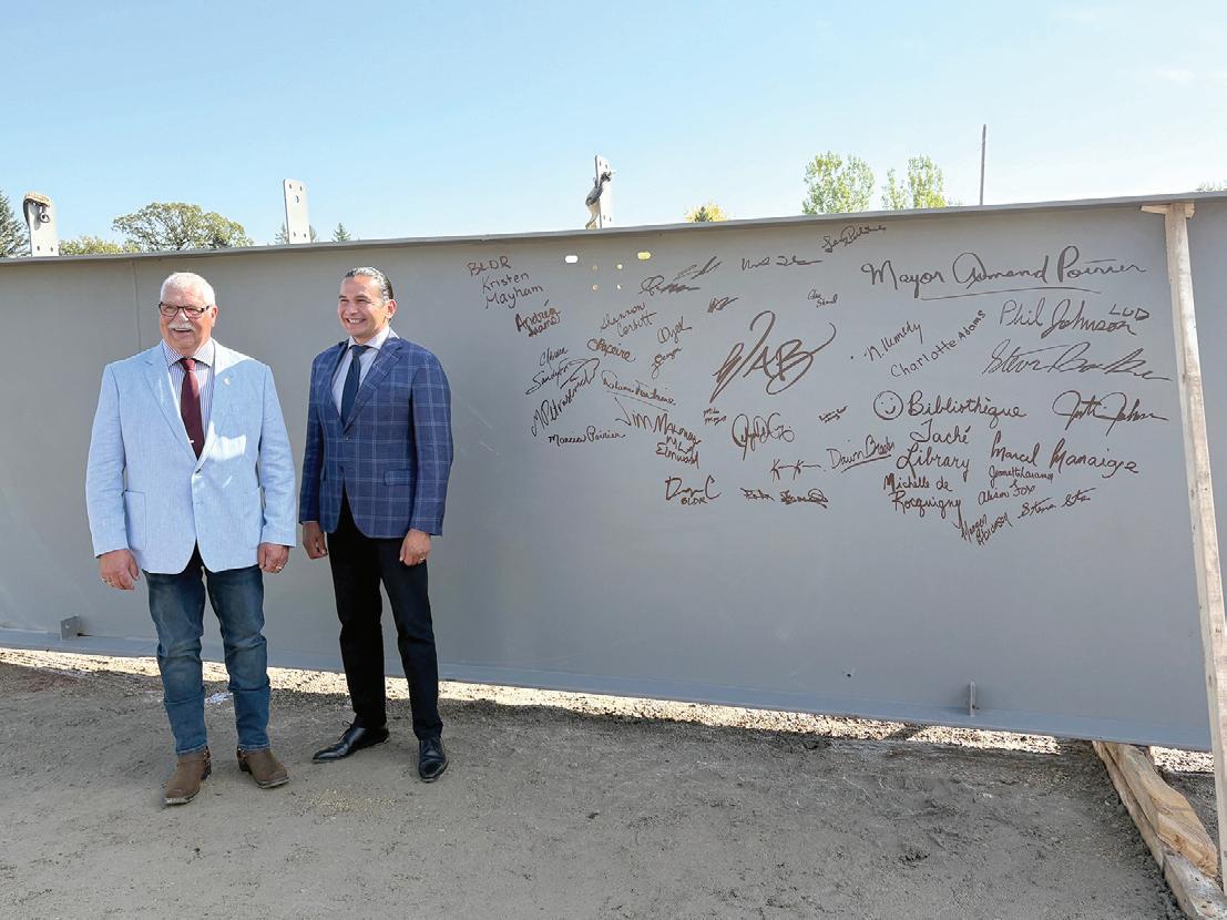 Taché Mayor Armand Poirier suggested that Premier Kinew and all those in attendance sign one of the truss beams that will soon be installed in the roof of the new complex. The large beam will help support the structure’s roof and now serves as a commemorative piece.