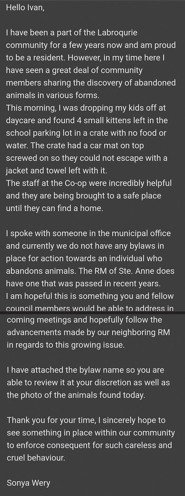 Residents with questions or concerns are encouraged to contact the Ritchot Public Works Department at 204-883-2142 or via email at publicworks@ritchot.com.
