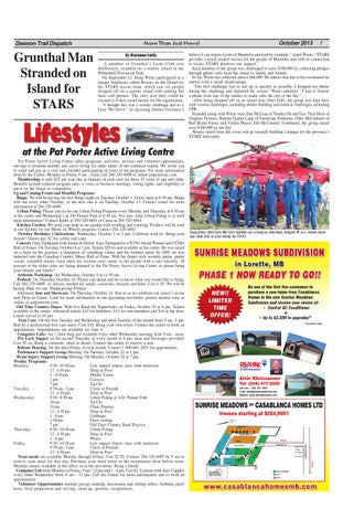 More Than Just News! By Marianne Curtis A member of Grunthal’s Lions Club was deliberately stranded on a remote island in the Whiteshell Provincial Park. On September 12, Doug Wiens participated in a unique fundraiser called Rescue on the Island for the STARS rescue team, which saw six people dropped off on a remote island with nothing but their cell phones. The only way they could be rescued is if they raised money for the organization. “I thought this was a worthy challenge and as a Lion “We Serve”. As incoming District Governor I