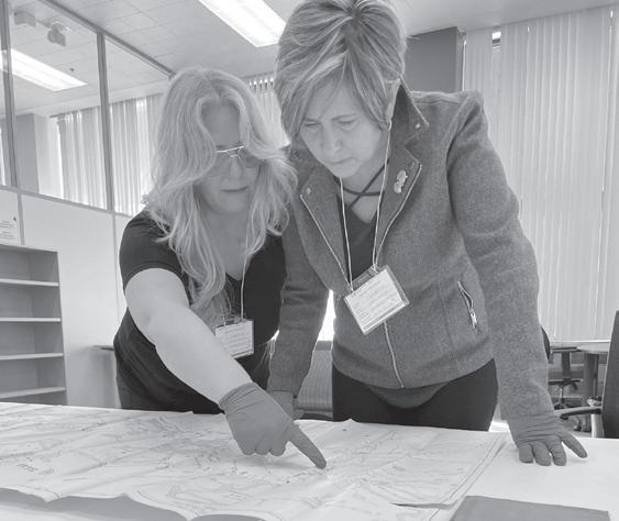 Mireille Lamantagne and Pierrette Sherwood to some time following the formal GG Awards programming to visit the Library and Archives Canada to tackle some further research. Here they are examining one of the maps they had never seen before.