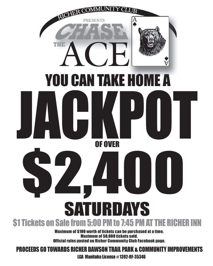 On Saturdays, at the Richer Inn. Fundraiser for the Richer Community Club! Tickets sold only between 5 to 7:45 pm and draw is at 8:15 pm. Tickets $1 each.