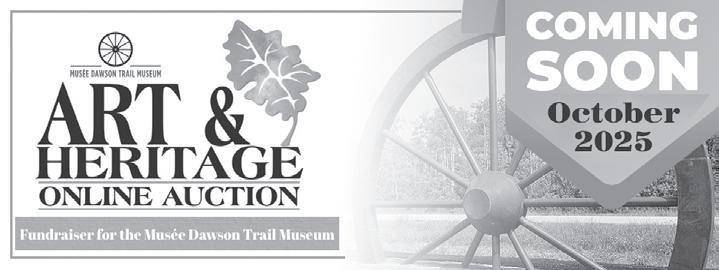 Art & Heritage Online Auction Preview and Pre-registration on October 12th, 2025 and Auction Bidding Starts October 20th, 2025. This is a Fundraiser for the Musée Dawson Trail Museum. Look for more details next month.