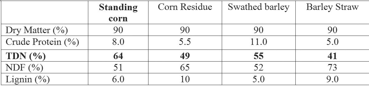 For example, the higher dietary energy of standing corn makes it nutritionally more attractive as compared to other common overwinter forages as illustrated in Table 1.