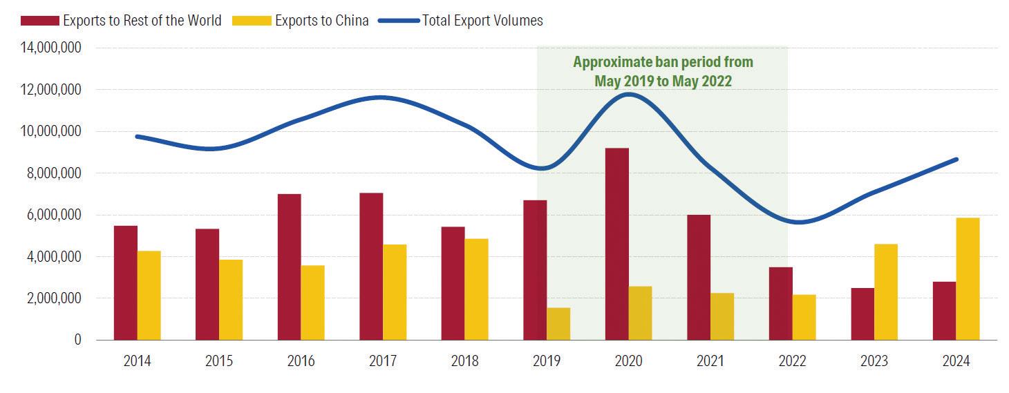 scrambled to redirect volumes. Processors adjusted production schedules. The entire value chain carried the weight of a major market suddenly closed.