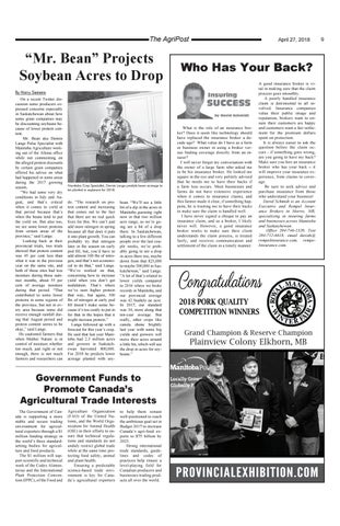 bean. “We’ll see a little bit of a dip in the acres in Manitoba guessing right now in that two million acre range, so we’re going see a bit of a drop there. In Saskatchewan, talking to a few different people over the last couple weeks, we’re probably going to see a drop in acres there too, maybe down from that 825,000 to maybe 500,000 in Saskatchewan,” said Lange. “A lot of that’s related to lower yields compared to 2016 where we broke records in Manitoba, and our provincial average was 42 bushels an acre. In 2017, our standard was 34, more along that ten-year average. But really, other crops like canola shone brightly last year with some big yields and growers will move their acres around a little bit, which will see the drop in acres for soybeans.”