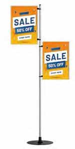 This stand is a modern and durable metal advertising stand with a dual-display function, allowing the use of both vertical and horizontal advertising posters or informational signs of various sizes at the same time. The stand features a stable and long-lasting construction, with a total height of 1703 mm. Thanks to its versatile design, METAL-DUO is perfectly suited for retail spaces, exhibitions, or other events where clear and attractive information presentation is essential. It is a functional and visually striking solution for effective advertising display both indoors and outdoors.