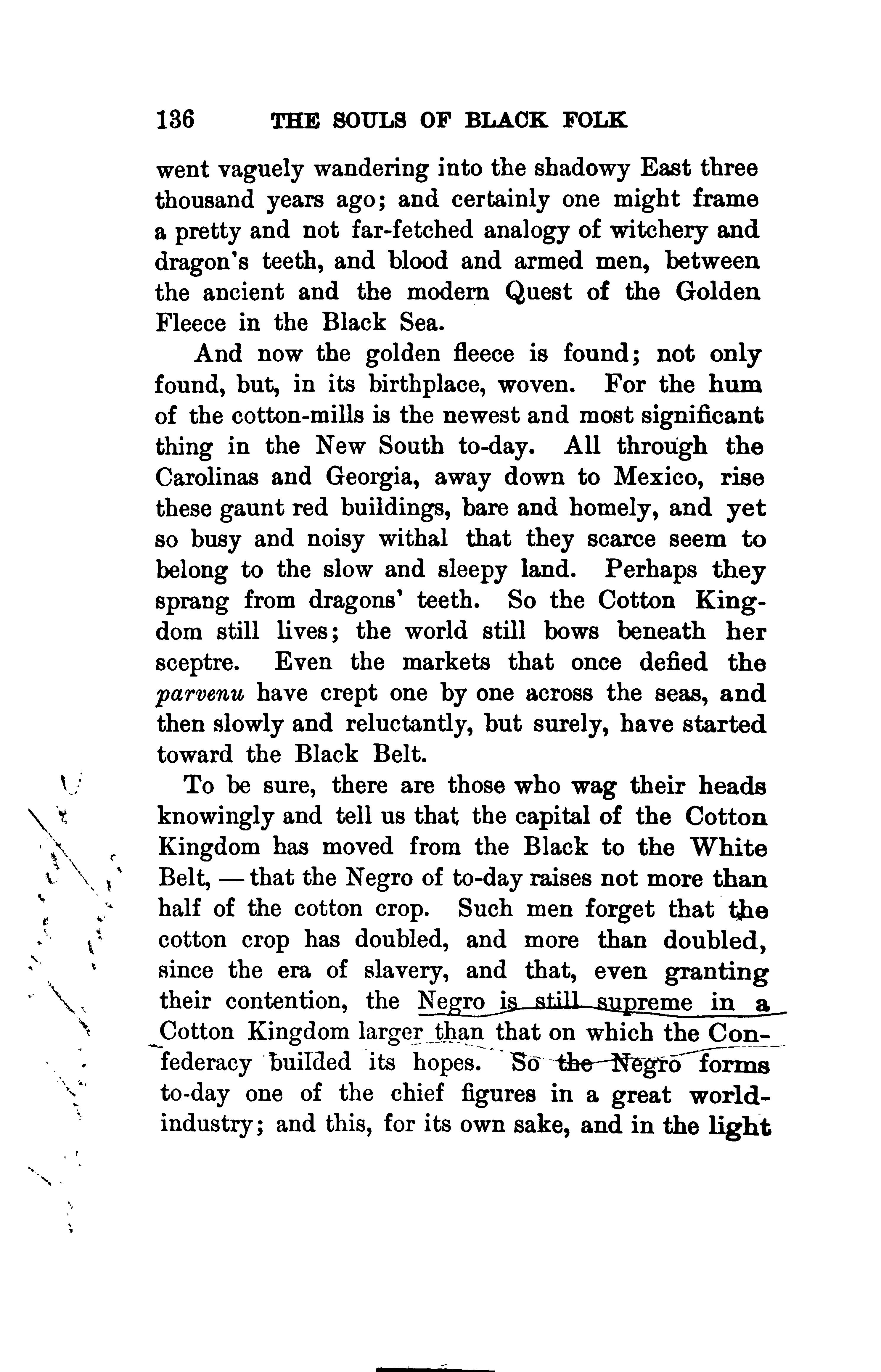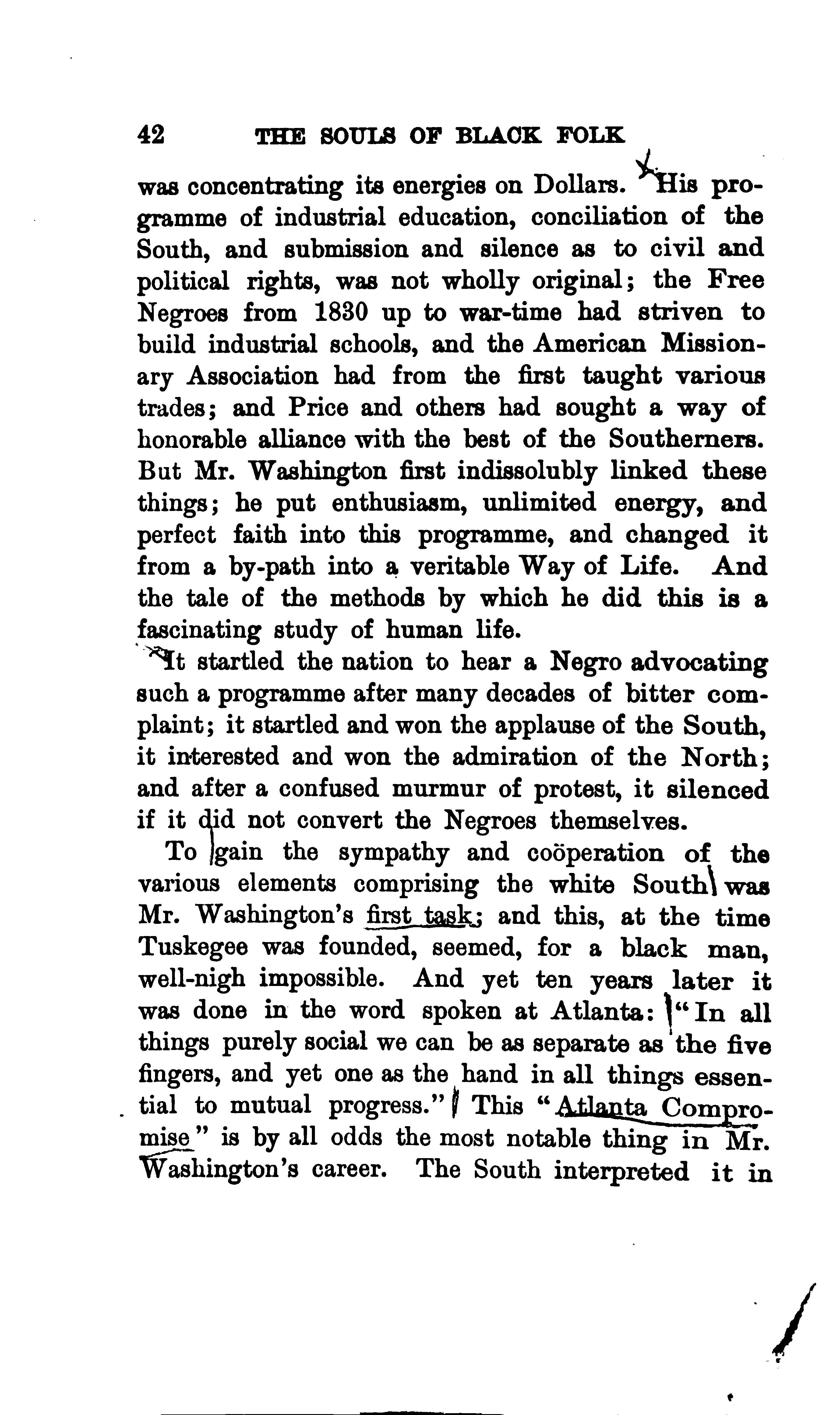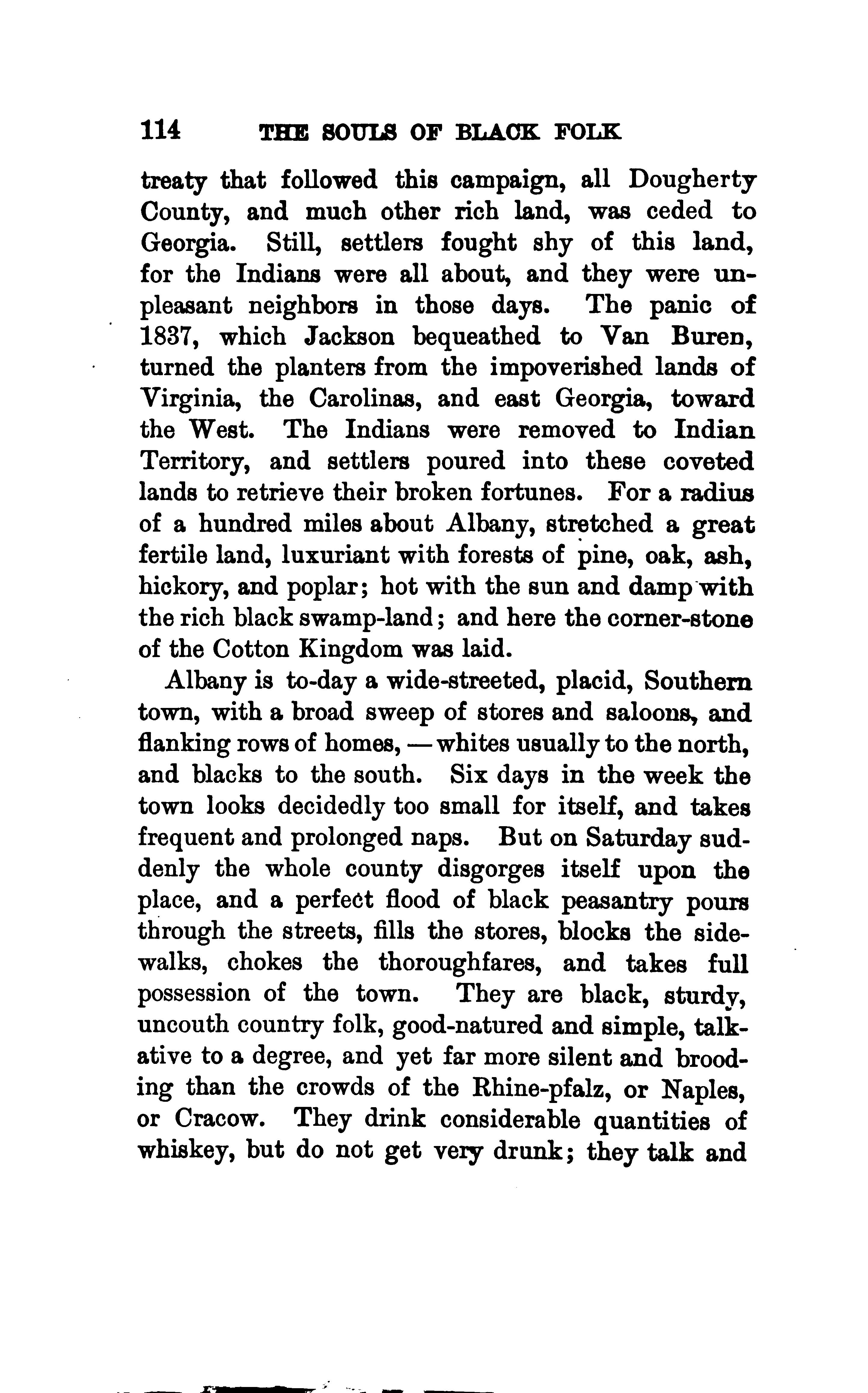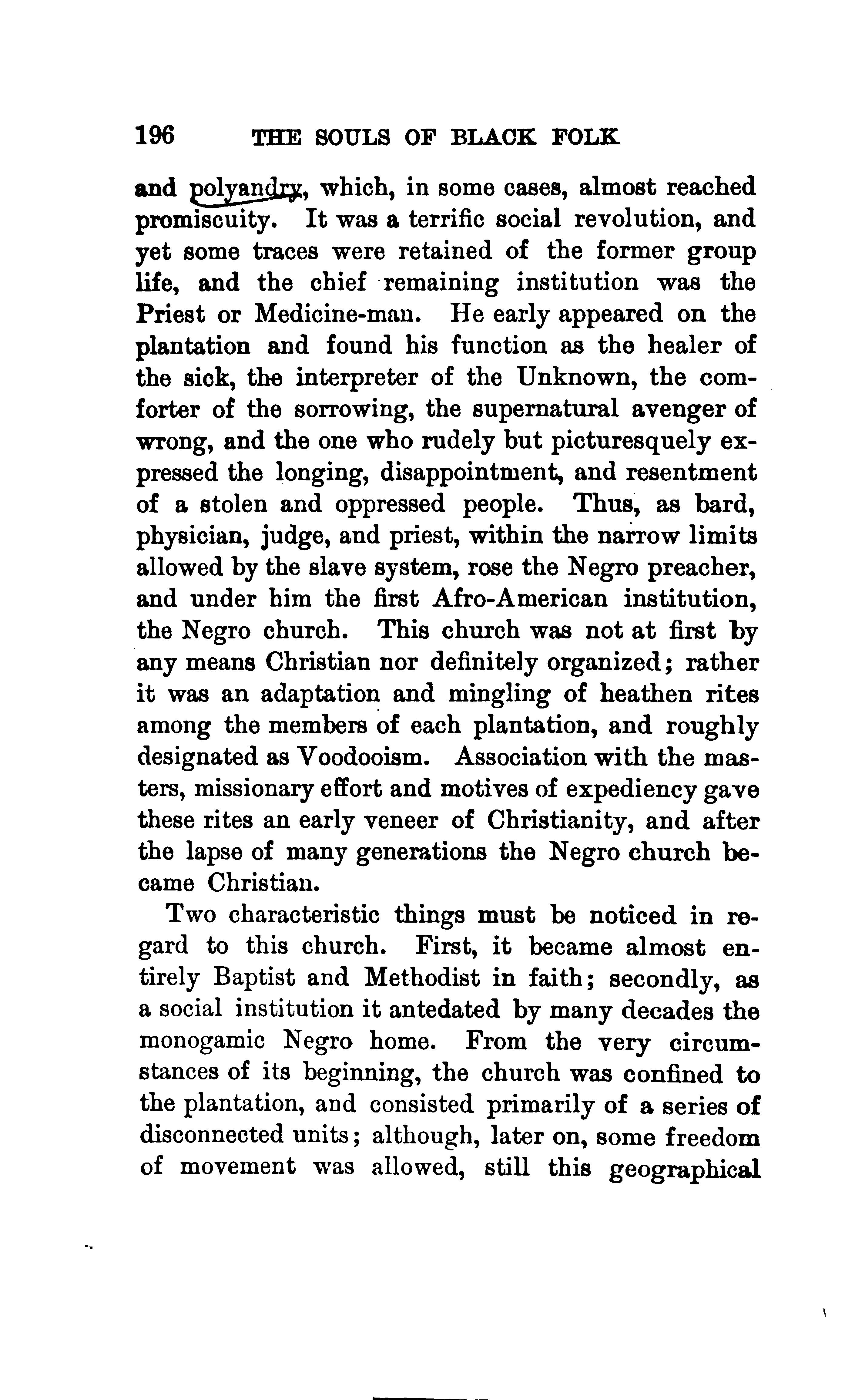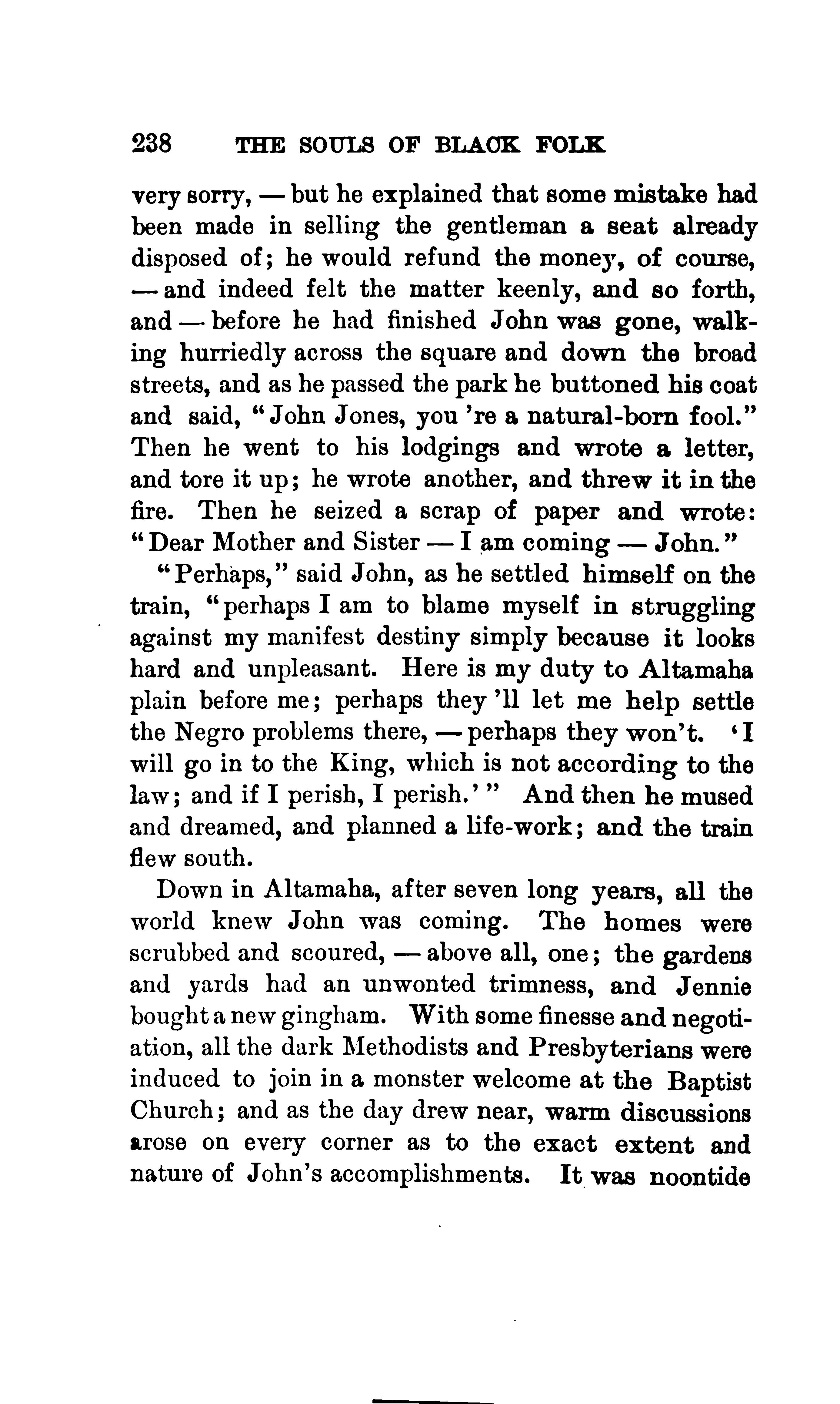 Leaving, then, the white world, I have stepped within the Veil, raising it that you may view faintly its deeper recesses, the meaning of its religion, the passion of its human sorrow, and the struggle of its greatersouls. All this I have ended with a tale twice told but seldom written, and a chapter of song.