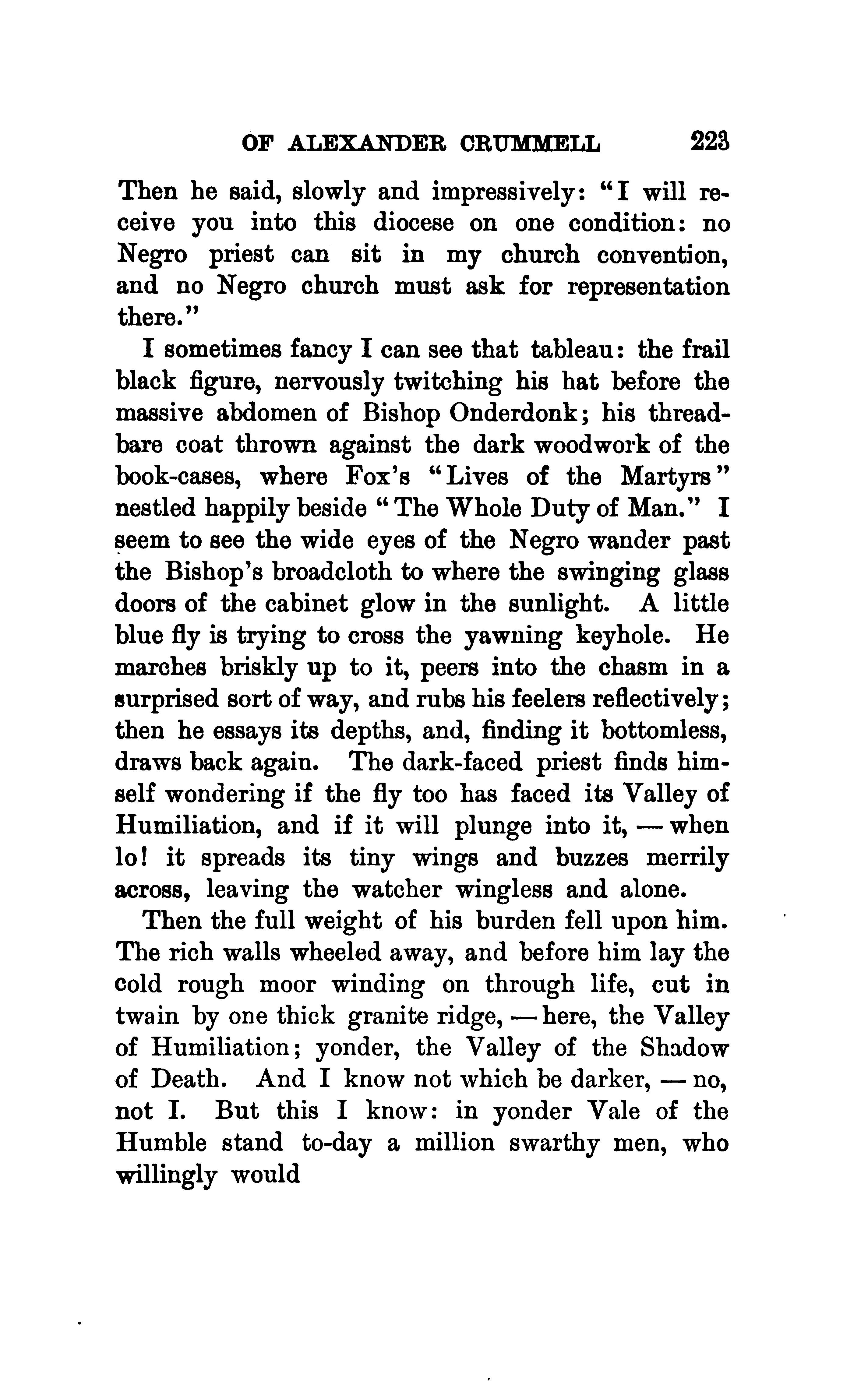 Hear my cry, O God the Reader; vouchsafe that this my book fall not still-born into the world wilderLet there spring, Gentle One, from out its leaves vigor ofthought and thoughtful deed to reap the harvest wonderful. Let the ears of a guilty people tingle with truth, and seventy millions sigh for the righteousness which exalteth nations, in this drear day when human brotherhood is mockeryand a snare. Thus in Thy good time may infinite reason turn the tangle straight, and these crooked marks on a fragile leaf be not indeed