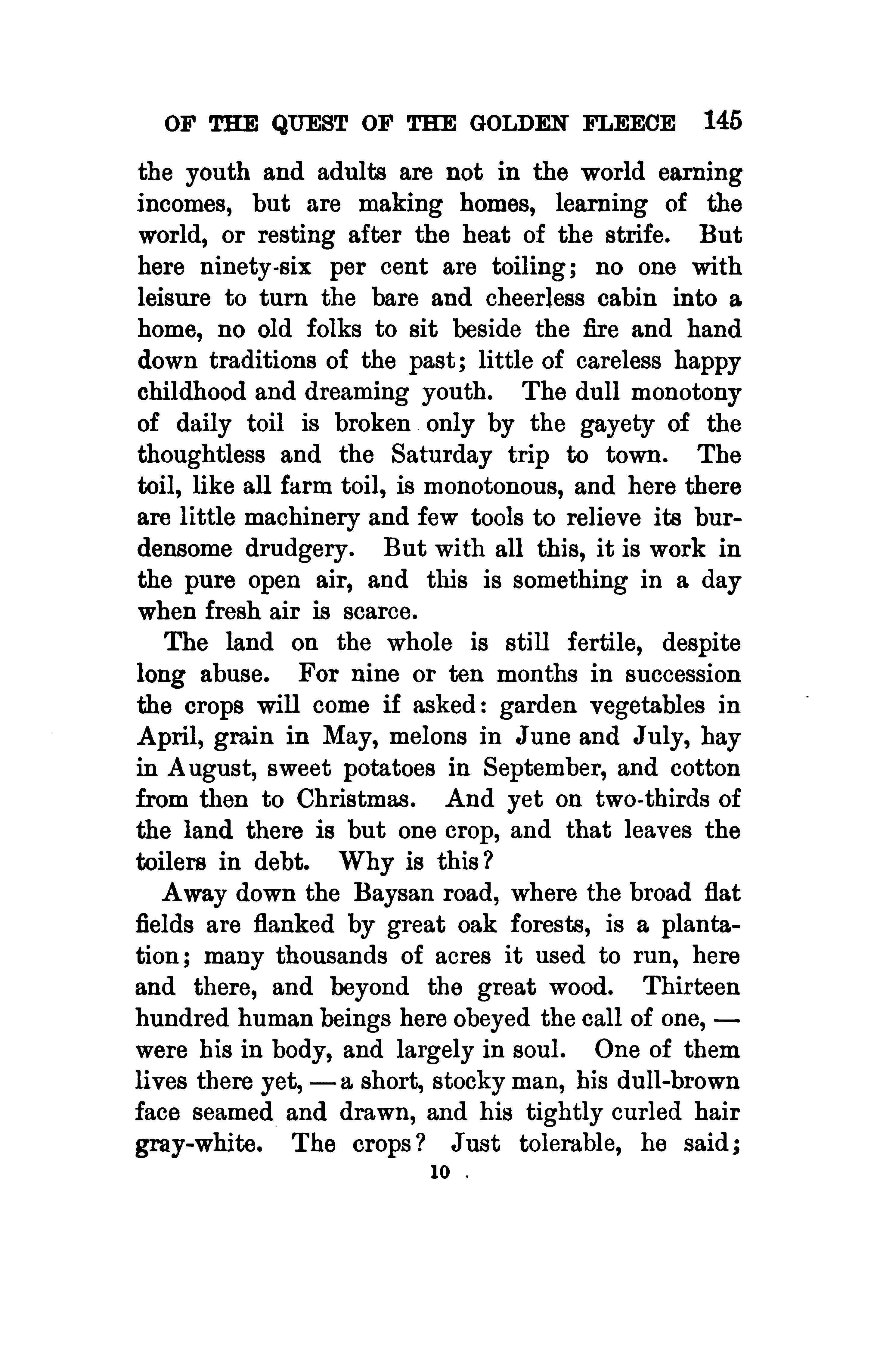 pushed, the problem looked even more difficult to grasp and solve than at the beginning. Nevertheless, three things that year's work did, well worth the doing: it relieved a vast amount of physical suffering; it transported seven thousand fugitives from congested centres back to the farm; and, best of all, it inaugurated the crusade of the New England schoolma'am.
