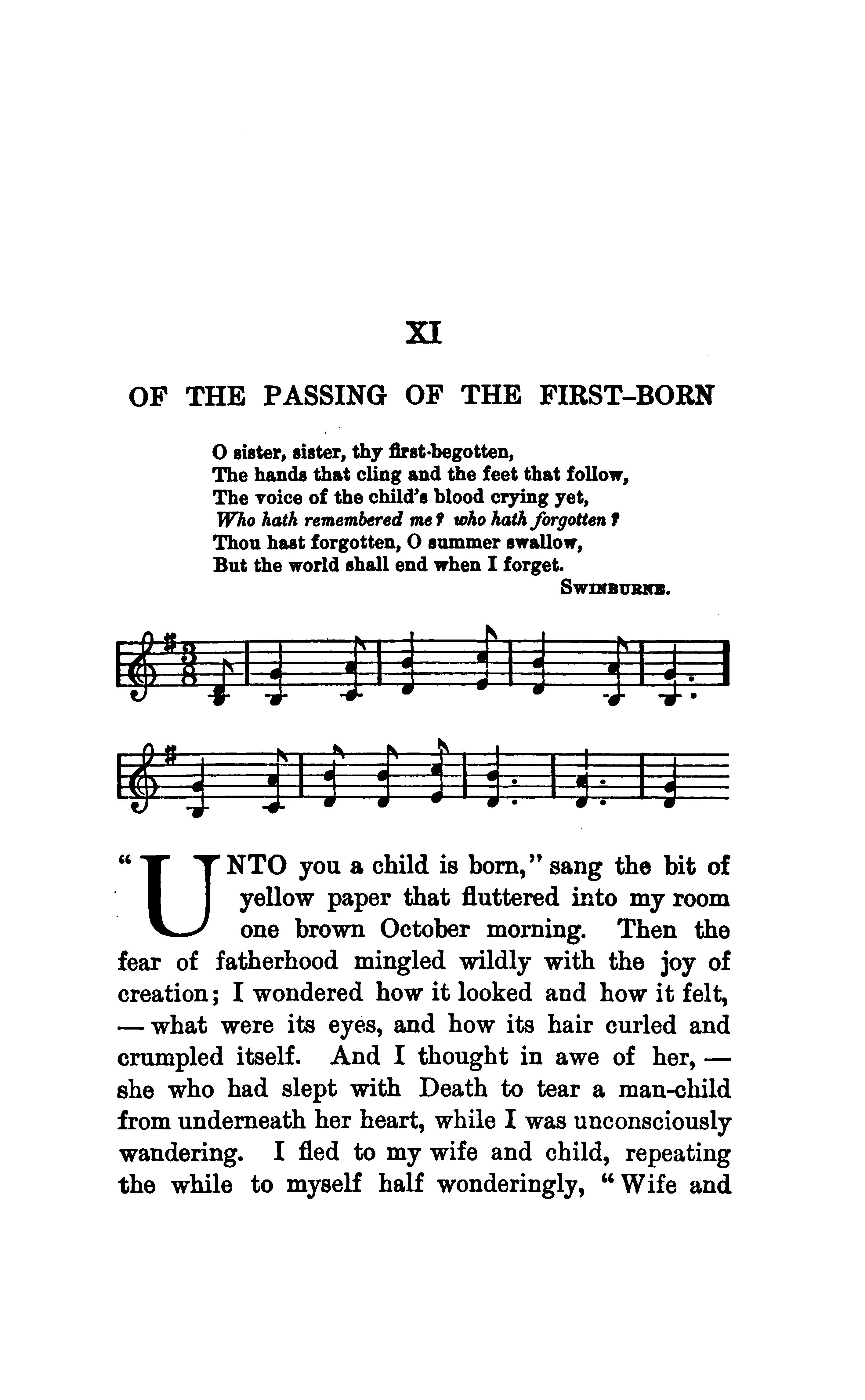 There are many others of the Negro folk-songs as striking and characteristic as these, as, for instance, the three strains in the third, eighth, and ninth chapters; and others I am sure could easily make a selection on more scientific principles. There are, too, songs that seem to me a step removed from the more primitive types: there is the maze-like medley, 'Bright sparkles," one phrase of which heads " The Black Belt"; the Easter carol, " Dust, dust and ashes "; the dirge, "My mother's took her flight and gone home "; and that burst of melody hovering over "The Passing of the First-Born "- "I hope my mother will be there in that beautiful world on high."