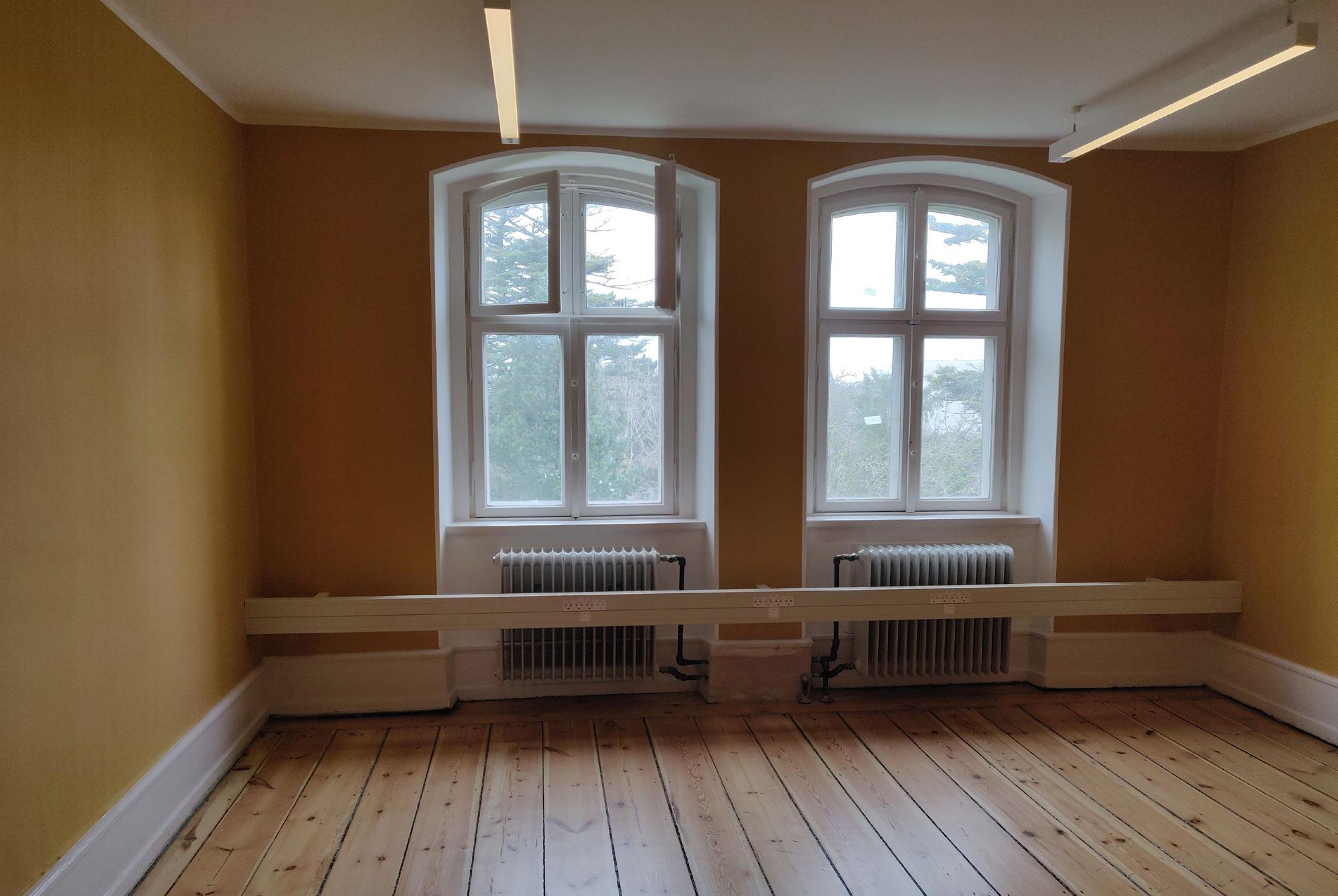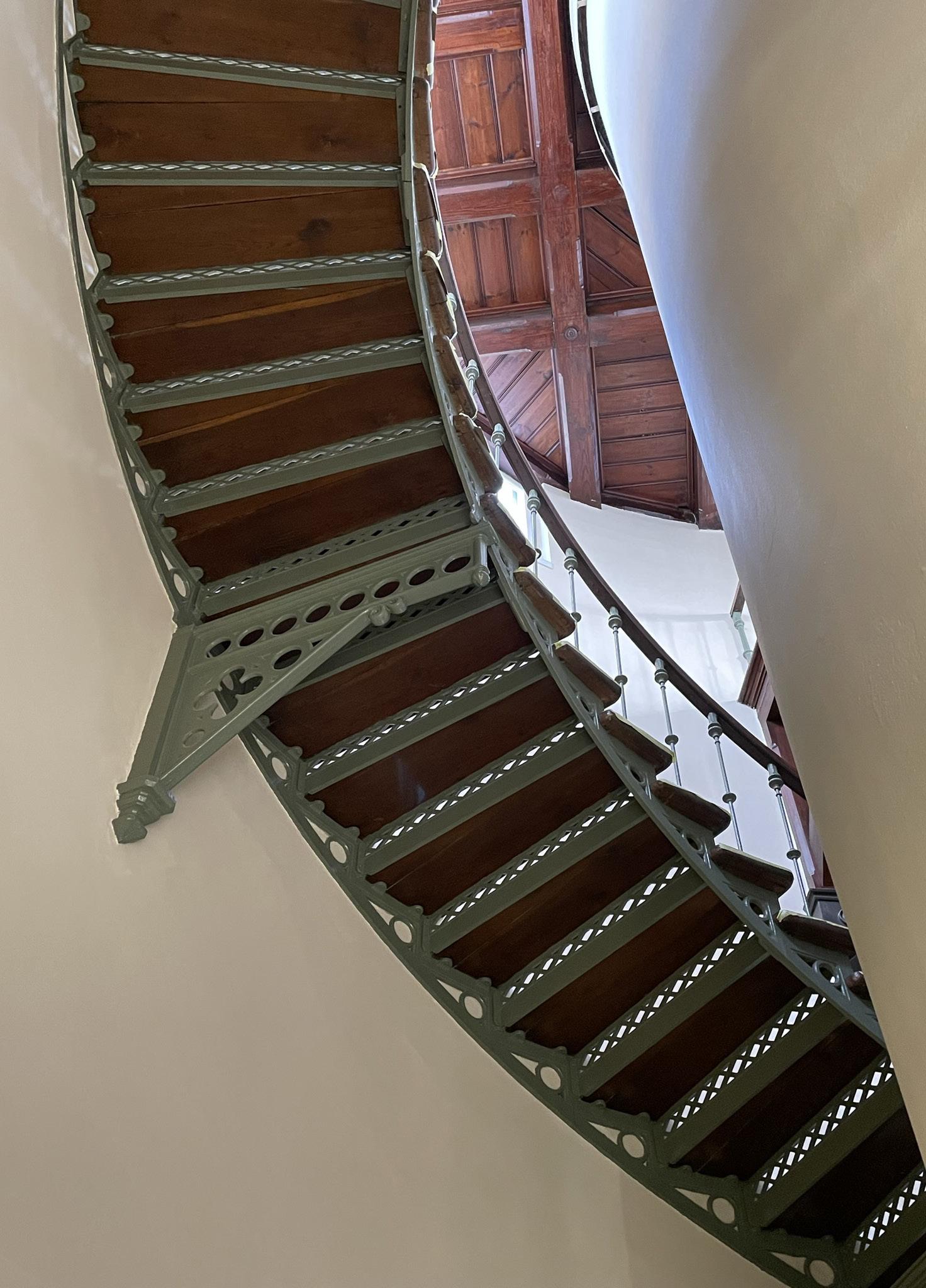 Undervejs har vi været i tæt dialog med Slots- og Kulturstyrelsen, særligt om farvesætningen. Vi er alle blevet klogere på hvordan farver har været brugt i huset oprindeligt, efterhånden som flere spor kom frem under ombygningen. Derfor er kravene fra SLKS også blevet skærpet undervejs – bl.a. blev der stillet krav til brug af de oprindelige malemedier tilsat de eksakte pigmenter og valør, hvorfor der ikke var rum til fortolkning og ’nedtoning’ af de oprindelige farver. På den måde faldt den samlede farvesætning på plads. Den fremtidige brug af huset må i disse få rum, der har en helt særlig historie, underordne sig den større fortælling om det meget funktionsbestemte hus. Brugerne må indordne sig de rammer huset stiller – til gengæld vil de blive ’belønnet’ med stemningsfulde rum, der er med til at videreformidle den 150 år lange historie om udforskning af himmelrummet på dette særlige sted.