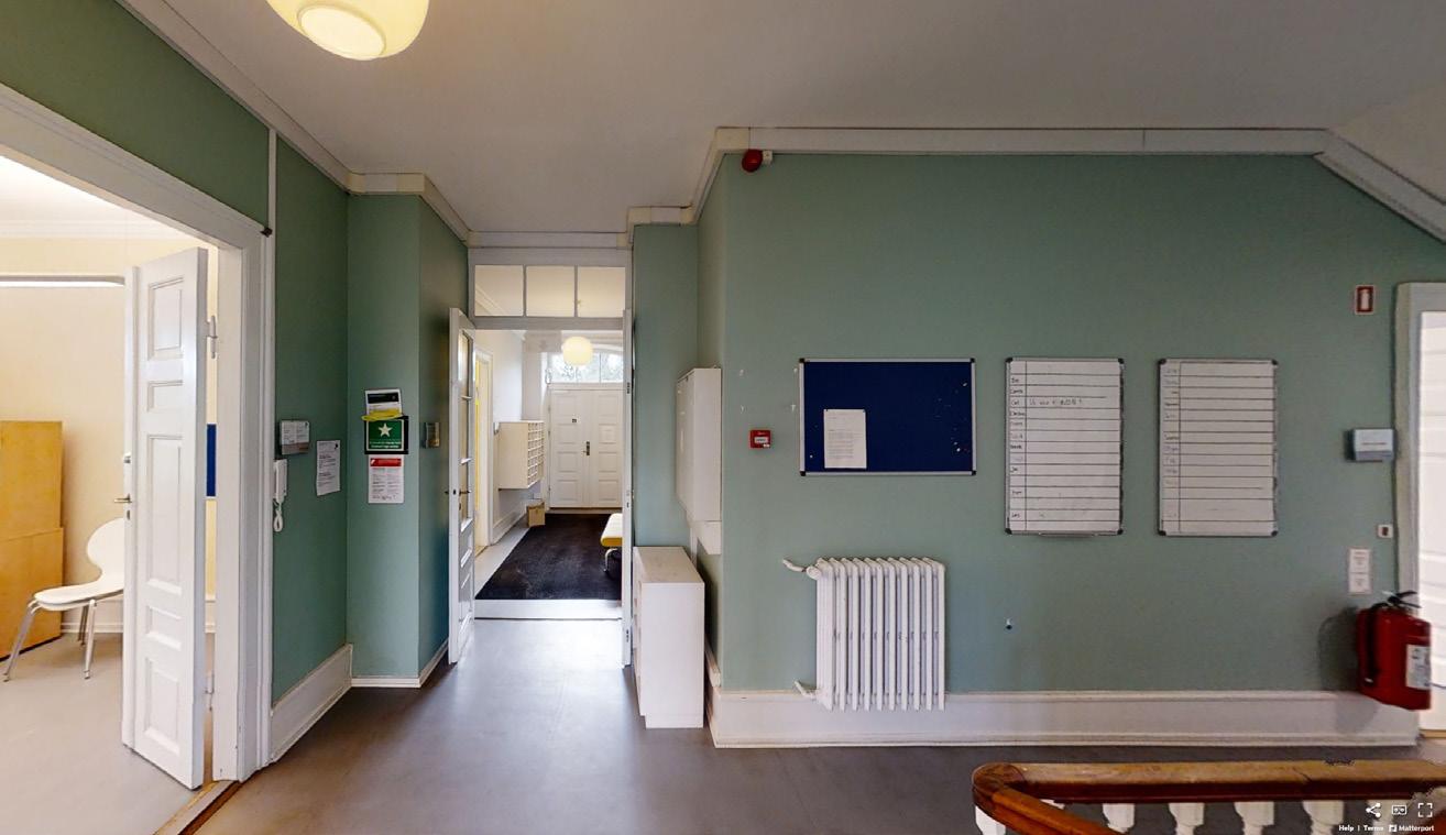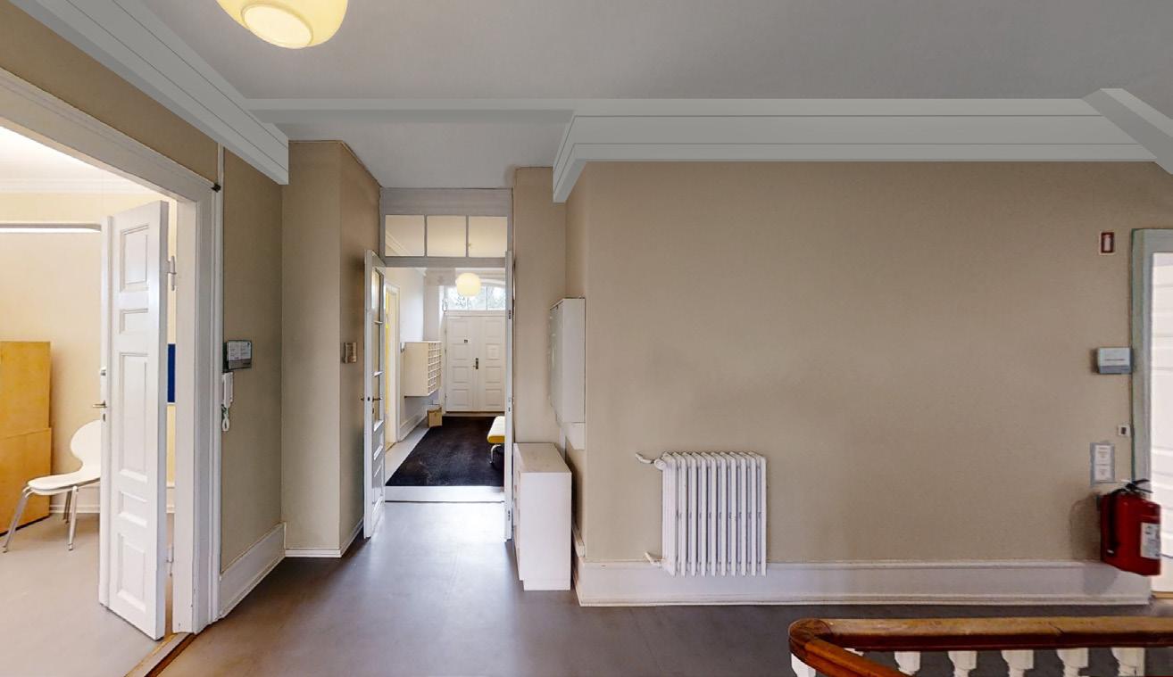 Venstre: Trapperum i den østlige sidefløj. Højre: Gang den østlige mellemfløj.