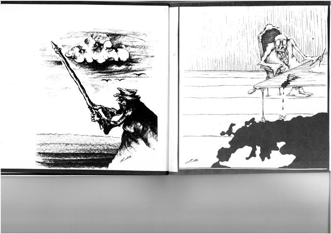 1An author present and engaged with his work in picture and text, first off through contributing the creation of Skopje’s cultural ambience, as well as in Belgrade and Zagreb, not to mention other cultural centers... He has not openly confronted with the so called comunist regiment, but taking that position dit not exclude his critical opinion and engaging relation towards the political and society reality. His Eco themes are of high importance to his work, considering the fact that they review universal themes from which all different interpretations of mankind stupidity and limitations are depicted with caricaturally - grotesque, metaphorical language. In the variety art works of Vasiliye Smilevski realized in different techniques and disciplines, there are still some mutual characteristics of his artistic nature, threaded together. We live in a world of relativization of all moral values, including those in the painting arts, to some specific extent. That ambience will in no way prevent us in pointing out the value of certain artists work, of those artists who not uncommonly, can be forgotten or marginalized for different reasons. The aspiration for revealing, has a sginificant meaning to those authors who wish to live this world in bad social circumstances, in unhumane surroundungs, desintegration and oblviion. Smilevski relates to and cares for general happenings from the past, as well as those considering family history.