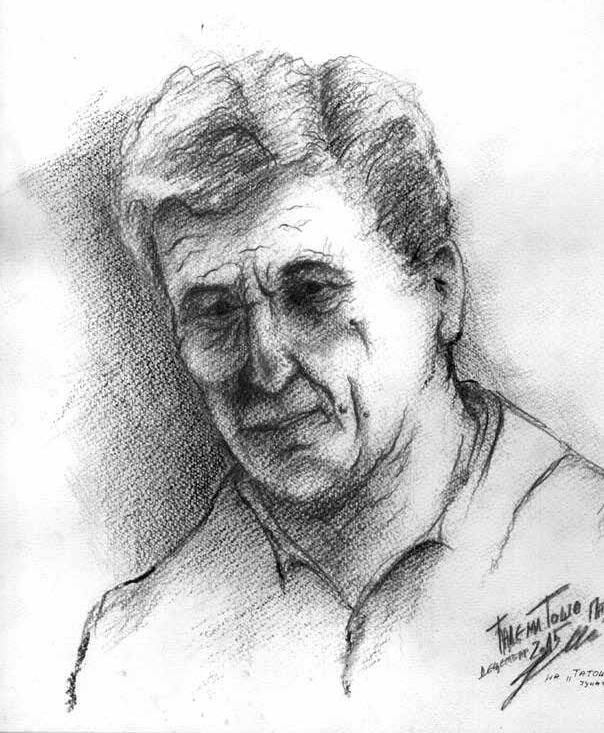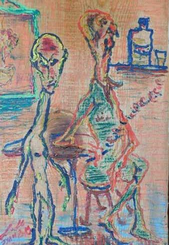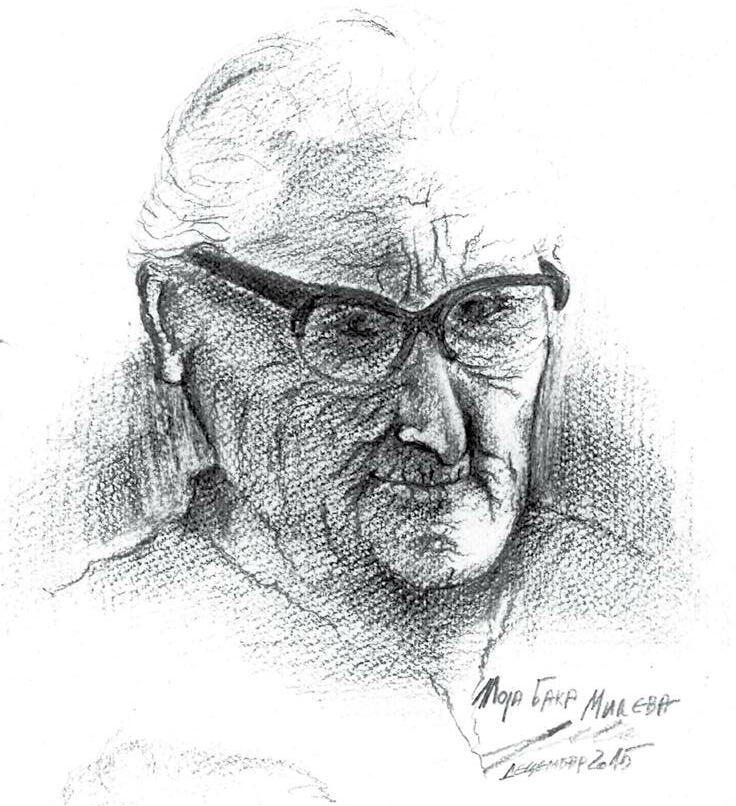 Vasiliye Smilevski has always cultivated the drawing technique as an autonomous art discipline built up in every part of the creative process through different ways and means. He has worked out a series of portraits of his dearest family members with a pencil, for which he reminisced his memories of them. Those portraits of his grandmother, mother, father, aunt, and sister accentuate a realistic description of them, with subtle mo ments of intimate character. His drawings in pastel colors depict motifs of melancholy and suffering. It is not by accident that Dostoevsky’s portrait, with his head bowed, shows up in his painted drawing of the picture named: “My talk with Dostoevsky,” painted with makeup colors in 2014... He, for whom suffering is humankind’s highest characteristic, with those