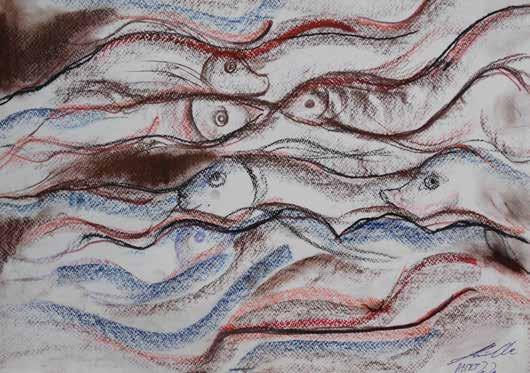 Smilevski has realized a series of paintings in watercolors and pastels, a few in gouache.