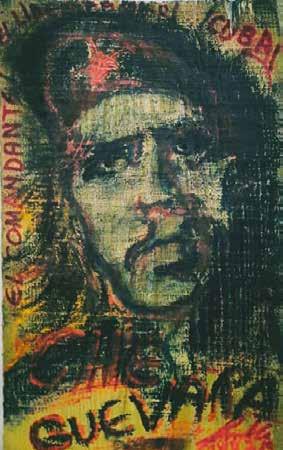In some of his other wokrs, he applicates the technique of spraying with automotive paint, as to depict a plane and conturous shaping of human forms and shadows, dynamically positioned in a geometrically articulated space... confirming his artistical afinity towards experimentation, by using different sorts of techniques and thematics. The painting “Cyclists” from 2016 is painted in watercolors, automotive paint and paint markers; “Cyclists” from 2019 in pastel and gouache... the same year his other works such as: “No title”; “Lyrical”; “Landscape”; “To my mother”; “Two faced”; “Composition” with a motif of cypress woods, date from. Smilevski draws on dfferent types of paper, paints on wooden boards from old tables or chair and furniture parts, he isn’t picky with his painters means and materials, but he works with every material available. He has painted several saints on wooden boards. The image of “Jesus Christ” from 2019 was painted with a darkened tone to it. The painting “Jesus” with it’s dark line, transparent veil, directs us to middle ages fresco - painting and iconography, that differs from western tradition, including the film art, where Jesus is blue eyed and blonde. In Vasiliye Smilevski’s artistical imagery of Christ, his personally thought out writing is well kept, while in manner of presentation and expression it differs from the middle ages black icons, such as the icon from Struga (specfiic for it’s symbolic function). Great artists such as: Bosch; Bruegel; Goya; Baudelaire; Munch have processed works dedicated to the secretive zones of human inner life. The other saint character is that of Saint Sava from 2019, dedicated to the symbol of the Orthodox Serbian people, painted on a round wooden board with a diametar of 42cm. He has painted birds such as “Owly” and miniature faces on small squares the same year. The famous Cuban - Argentinian revolutionay Che Guevara, has been painted by Smilevski, on a rectangular wooden board vertically positioned in 2019. Smilevski’s creative approach to drawing characters, figures, woman’s acts with a controlled erotic suggestion, is affective and tempreamental, that is especially noticable in the motif of the “Cyclists”, cought with horizontal lines that erase the object. Motifs in his drawings are expressive figures with grotesque features, such as a horse, located in a landscape drawn in a simplified manner. “Black walkers” 2019 drawn with pastel and water markers, represents a group of people - shadows, who every man for himself walk out of nowhere towards an obscure direction,