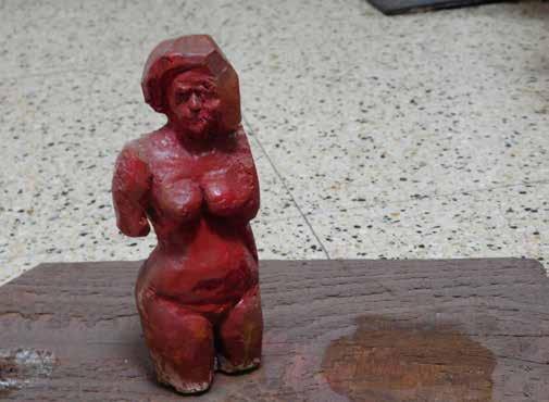 Vasiliye Smilevski, a nature lover, collects roots from different trees and branches in which he recognizes sculptured shapes. His sculptures worked out in the ‘90s of the 20th century are characterized by robust body shapes in places with erotic or symbolic features. A woman’s act is bent down, positioned in an unconventional pose, accentuating primitivistic features. His works of petit sculptor plastic are sculptured from clay and terracotta, col ored in red, giving their features unity. From such material, he sculpts heads of dogs and figures acts. Fauvists and cubists of the 20th century have col lected works from primitive art. At the same time, Picasso realized a vital and fertile synthesis with modern art, giving them a renewed and fresh approach.