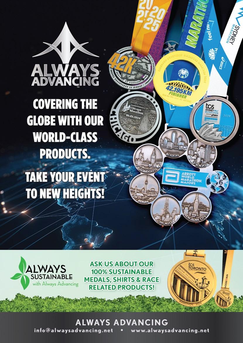 There’s no strict time limit for completing the full series. To earn the medal runners must fnish all fve races (distance: 42.2 km).