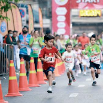 At the heart of the event was the AIMS Children’s Relay – a fast and fun 5x1km race. Each team was made up of fve members, with at least one female runner required to ensure gender balance and inclusivity. The format encouraged kids to train together, run together and cheer each other on. For many this was their frst experience of racing as part of a team and the sense of unity was clear to see as children sprinted hand-inhand towards the exchange zones.