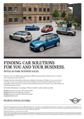 FINDING CAR SOLUTIONS FOR YOU AND YOUR BUSINESS. DOUGLAS PARK BUSINESS SALES. With five cars in the MINI range, including the MINI Countryman Plug-in Hybrid, there’s a vehicle to suit every business and every driver. Douglas Park offer tailored fleet solutions for all kinds of businesses. Whether you’re a sole trader or run a fleet of cars, we can provide you with everything you need to make the right choices for you. Compelling contract hire rates, exclusive deals and industry know-how are just a few of the benefits our committed team has to offer. For further information or to arrange a 48-hour test drive†, please contact us today. Hamilton Almada Street ML3 0ET 01698 303999 Glasgow Kyle Street G4 0HP 0141 333 8200 Stirling New Kerse Road FK7 7RZ 01786 449370 douglasparkmini.co.uk