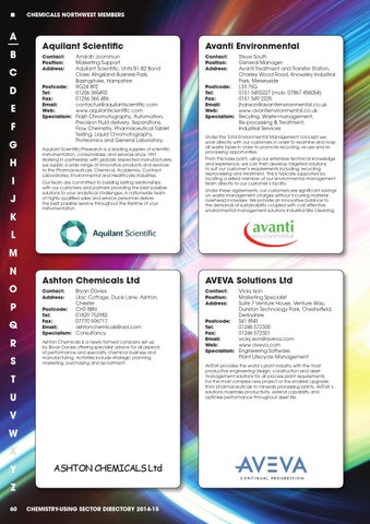 Amiirah Joommun Marketing Support Aquilant Scientific, Units B1-B2 Bond Close, Kingsland Business Park, Basingstoke, Hampshire Postcode: RG24 8PZ Tel: 01256 365492 Fax: 01256 365 486 Email: contactus@aquilantscientific.com Web: www.aquilantscientific.com Specialism: Flash Chromotography, Automation, Precision Fluid delivery, Separations, Flow Chemistry, Pharmaceutical Tablet Testing, Liquid Chromotography, Proteomics and General Laboratory. Aquilant Scientific/Presearch is a leading supplier of scientific instrumentation, consumables, and services since 1991. Working in partnership with globally respected manufacturers, we supply a wide range of innovative products and services to the Pharmaceuticals, Chemical, Academia, Contract Laboratories, Environmental and Healthcare Industries. Our team are committed to building lasting relationships with our customers and partners providing the best possible solutions to your analytical challenges. A nationwide team of highly qualified sales and service personnel deliver the best possible service throughout the lifetime of your instrumentation.