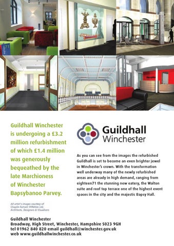 Guildhall Winchester Broadway, High Street, Winchester, Hampshire S023 9GH tel 01962 840 820 email guildhall@winchester.gov.uk web www.guildhallwinchester.co.uk