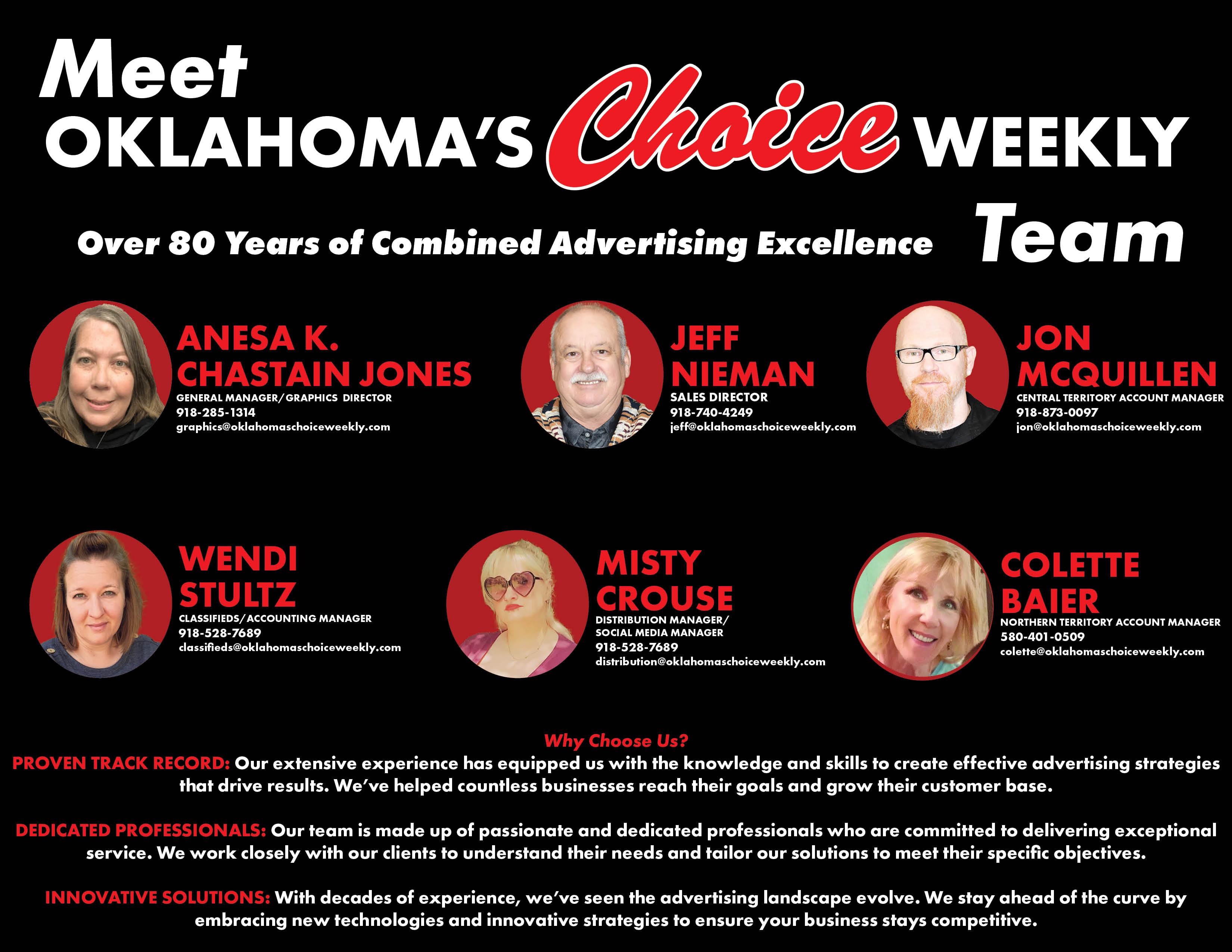 General Manager/Graphics Director 918-285-1314 graphics@oklahomaschoiceweekly.com