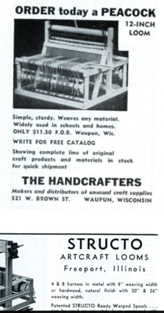 In the catalog this loom is advertised as "Simple. Sturdy. Weaves any material. Used in schools and homes."
