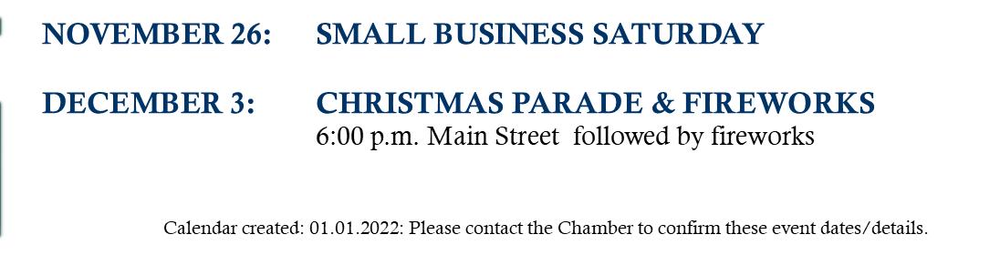 Visit Kingfisher!! Have you seen our new website? You must visit Kingfisher.org/Chamber Current Chamber members are all listed under our membership directory. Your business name will appear when searched for by name, or category! What’s more, it’s mobile friendly! People searching the web can now find your business listed on our page from the ir mobile device! We are excited to be adding features to the page so make sure you are watching Go take a look at the page featuring the City of Kingfisher, the Chamber, and our new, “Experience Kingfisher,” pages. It’s one more thing to be proud of from K Town. The excellence continues! If you’re not a member, call us today for details on this benefit and m any more! 405.375.4445 My door is always open to you. Stop by and chat anytime! Shauna L. Rupp, Executive Director, Kingfisher Chamber Shauna L. Rupp, Executive Director 405.375.4445, 405.368.2160 110 E Broadway Kingfisher, OK 73750 www.kingfisher.org/chamber/ 17759 US Highway 81 • Kingfisher, OK 73750 405.375.3111 PKEQUIPMENT.COM Experience Kingfisher - It’s YourWorth Time! JANUARY 31: MARCH 8: APRIL APRIL 16: JUNE 15: JULY 4: All day celebration/activities at Park Live band: 8:00 p.m. Fireworks display at dark AUGUST 6: KRAZY DAYS DOWNTOWN & MERCHANT SALES TOWN WIDE GARAGE SALE COOL CAR SHOW SEPTEMBER 21: BIZConnect CHAMBER Network Lunch OCTOBER 6, 13, 20: VIBECoffee Young Professionals U40 & Business U5Yo OCTOBER 31: DOWNTOWN TRICK OR TREAT NOVEMBER 6: NOVEMBER 18: NOVEMBER 26: DECEMBER 3: GOLF TOURNAMENT: WIB: WOMEN IN BUSINE CANVA TRAINING: How to Build a Stand out Promotional Flyer JANUARY 31: CHAMBER ANNUAL BANQUET 5:30 Networking/Games 6:30 Meal/Program/Awards MARCH 8: BIZConnect CHAMBER Network Lunch APRIL 7, 14, 21: VIBECoffee (Young Professionals U40 & Business U5Yo) APRIL 16: EASTER EGG HUNT JUNE 15: BIZConnect CHAMBER Network Lunch JULY 4: INDEPENDENCE CELEBRATION Parade 10:00 a.m. (Main Street) All day celebration/activities at Park Live band: 8:00 p.m. Fireworks display at dark •Small Engine Mechanic •Lawn & Garden •Supplies & Tools •Garden Seed •Growing Supplies •Large Paint Depar tment •Plumbing, Electrical, Hardware 123 East Miles Avenue • Kingfisher, OK 73750 Phone: 405-375-6770 • Fax: 405-375-6730 acehdw@pldi.net •www.acehardware.com Up on the housetop, click, click, click! The parade theme this year is Santa’s workshop at the North Pole! Please join us for our oneof-a-kind, lighted, night Christmas parade, on December 3rd. Our charming parade down Main may make you feel like you’re in a Hallmark Movie! But stay tuned, there’s more! After the parade, there’s a fabulous fireworks show off the top of downtown buildings all choreographed to festive music. Bring your family and friends, and Experience Kingfisher! Experience KingfisherIt’s Worth Your Time! Rother Bros., Inc. 405-375-5349 Get Yours Today! The Right Choice! Oklahoma's Choice Weekly!
