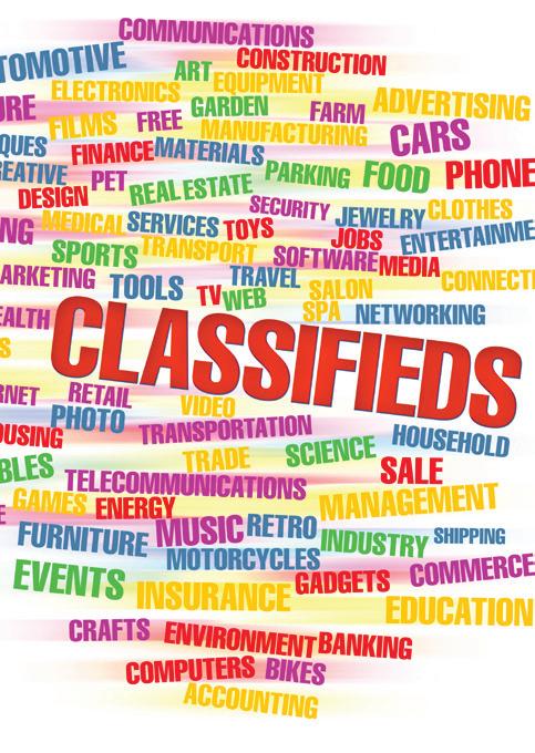 The COVID-19 vaccine is saving lives. • Proven safe & e ective by clinical trials • FDA authorized • Free to you The COVID-19 vaccine has been proven safe and highly e ective at preventing you from getting the virus. It also helps keep you from becoming seriously ill or dying from COVID-19. It’s normal to have questions and concerns about the vaccine. Visit GetVaccineAnswers.org and get informed about how it can protect you and your family...and help stop the pandemic. STILL WA TERMEDICAL.COM Appliances & Furniture, Entertainment, Guns/Sporting Goods, Miscellaneous, Personals, Upcoming Events, Want To Buy & Much More! OKLAHOMA’S Choice WEEKLY MISCELLANEOUS PERFECT TIMING for the perfect gift for an aquarium enthusiast: 125 Gallon Aquarium with stand and lighted hood. Unit has been in service for almost two years and is home to an established community of fish. 3 HOB filter units, heater, everything as it is now included. $750 for everything. Pickup only, Drumright. 918-223-7938 The Right Choice! Oklahoma's Choice Weekly! DOWN THE RABBIT HOLE AT GREENS CORNER 723 E. Main St. Shawnee, OK 405-388-5778 Wednesday-Saturday 10am-5pm Collectibles, Cast Iron, Furniture and More!! HAY TRADE HOTLINE Y HOTLINE OKLAHOMA AGRICULTURE IS IN CRISIS. PASTURES AND HAY FIELDS ARE BURNING UP. PONDS ARE DRYING UP. CROPS ARE WITHERING. FARMERS AND RANCHERS ARE CULLING HERDS . TO HELP IN WHATEVER WAY WE CAN, OKLAHOMA’S Choice WEEKLY IS OFFERING FREE CLASSIFIED ADS FOR ANYONE HAVING HAY TO SELL , TRADE OR DONATE AND FREE CLASSIFIED ADS FOR ANYONE LO OKING FOR HAY. HO OKING UP THE SUPPLY WITH THE DEMAND WILL HELP EVERYONE GE T THROUGH THIS CRISIS. PLACE YOUR FREE CLASSIFIED ADS BY CALLING OR TEXTING OUR HAY TRADE HOTLINE Y AT 918-528-7689 OR EMAILING YOUR AD TO CLASSIFIEDS@OKLAHOMASCHOICEWEEKLY.COM OKLAHOMA’S Choice WEEKLY SERVES OKLAHOMAS FARMERS, RANCHERS AND RURAL COMMUNITIES. LE T ’S ALL WORK TOGE THER TO HELP EACH OTHER. 918-528-7689 • www.oklahomaschoiceweekly.com Oklahoma's Choice Weekly Your Premier Weekly Consumer Resour ce For Individuals And Business Look for The Hay Trade Hotline classified ads on Page 11 of this edition! BUSINESS OPPORTUNITY Over 300 Classic Cars to restore or part. Collected over 40 years, mostly 50's-60's. Taking bids on business. 405-250-8312