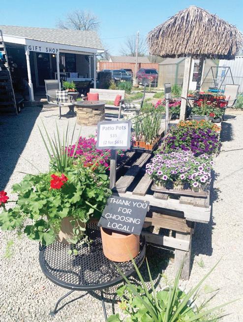 314 N. 5th Ave • Stroud, OK 918-987-1234 Mon-Sat 10am-6pm • Sun 1pm-6pm Plants and Flowers Tyler Candles • Home Decor Clothing • Jewelry Gift Items Hand Dipped Ice Cream And More! s Pottery dles • Home Deco hing • Jewelry ipped Ice Cream LARGE SELECTION OF SPRING POTTED AND HANGING PLANTS NOW IN STOCK.