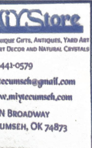 THURSDAY, JUNE 13, 2024 OKLAHOMA'S CHOICE WEEKLY - PAGE 4 WENDY BARNES Insurance and Financial Services Agent Wendy Barnes Insurance Agency 101 S. Broadway St. Tecumseh, OK 74873 Office 405-872-2700 Cell 405-312-9965 Fax 405-872-0588 wbarnes@farmersagent.com Registered Representative. Farmers Financial Solutions, LLC 31051 Agoura Rd. Westlake Village, CA 91361 el 4-0200 Member FINRA & SIPC 701 Mitchell Road • Tecumseh, OK 405-70 4-9809• Sun-Thurs 11am-9pm • Fri & Sat 11am-9:30pm Mary Kay® products offer you so many ways to enhance your beauty and well-being. Innovative skin care! On-trend color! Pampering bath and body products and so much more! Let’s find your favorites. Contact me today THE BEAUTY OF YOU! Name Independent Beauty Consultant Mary Kay® Personal Web Site Address Phone Number Cindy Nieman Independent Sales Director www.Mar ykay.com/cnieman 405-740-4233
