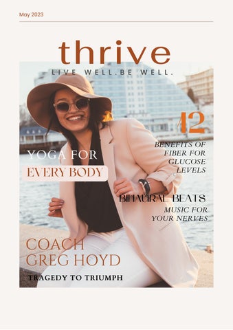 thrive L I V E W E L L . B E W E L L . L I V E W E L L . B E W E L L . May2023 YOGAFOR EVERY BODY TRAGEDY TO TRIUMPH COACH GREG HOYD BENEFITS OF FIBER FOR GLUCOSE LEVELS 12 BINAURAL BEATS