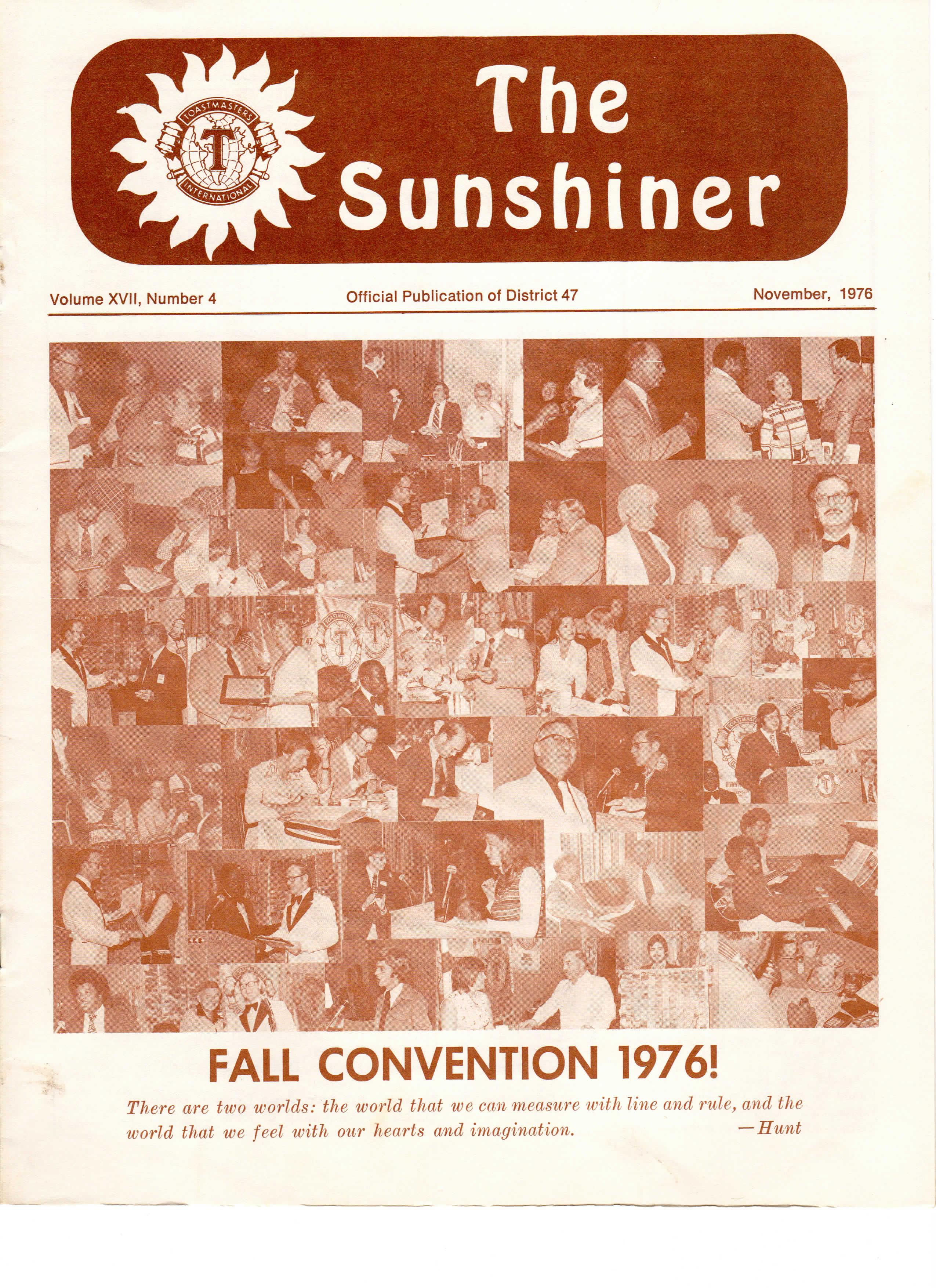 What a bunch of charged up Toastmasters we have in D-47! It is increasingly evident they are sharing their ideas and labor each day Energentic men and women are saying, "Hey, have you heard what Toastmasters has to offer you?" to non-Toastmasters.